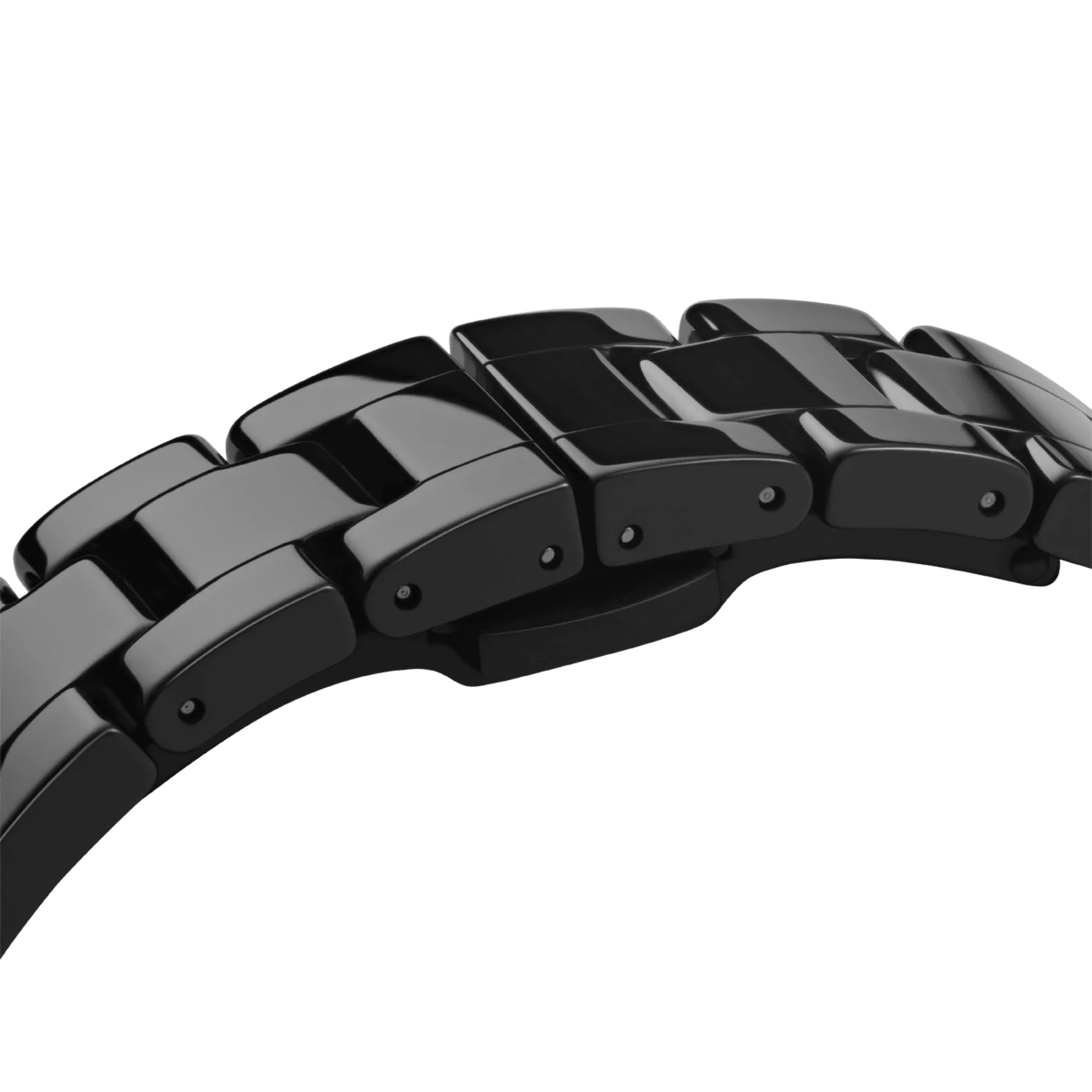 L'Iconic Link Ceramic è il nostro primo orologio in ceramica. Presenta accenti argentati su lancette e indici del quadrante che si abbinano perfettamente alla superficie lucida delle maglie in ceramica. Questa esclusiva aggiunta alla collezione Iconic Link si distingue come il nuovo pezzo forte. Il piccolo orologio nero di cui tutti hanno bisogno nella propria collezione. Si prega di notare che gli urti violenti possono causare scheggiature o crepe della ceramica, sebbene questo non sia un evento comune.