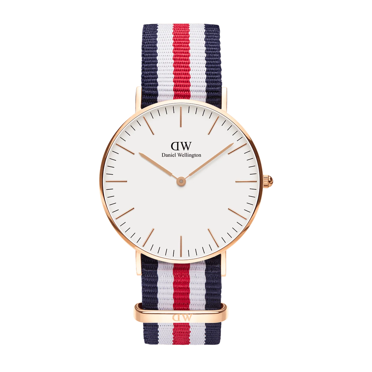 Ispirato ai colori sgargianti di una bandiera classica, questo cinturino NATO rosso, bianco e blu celebra l'intramontabile stile preppy americano. Il cinturino giocoso, abbinato al quadrante semplice ed elegantemente sottile, regala un orologio perfetto sia per il lavoro che per il tempo libero.